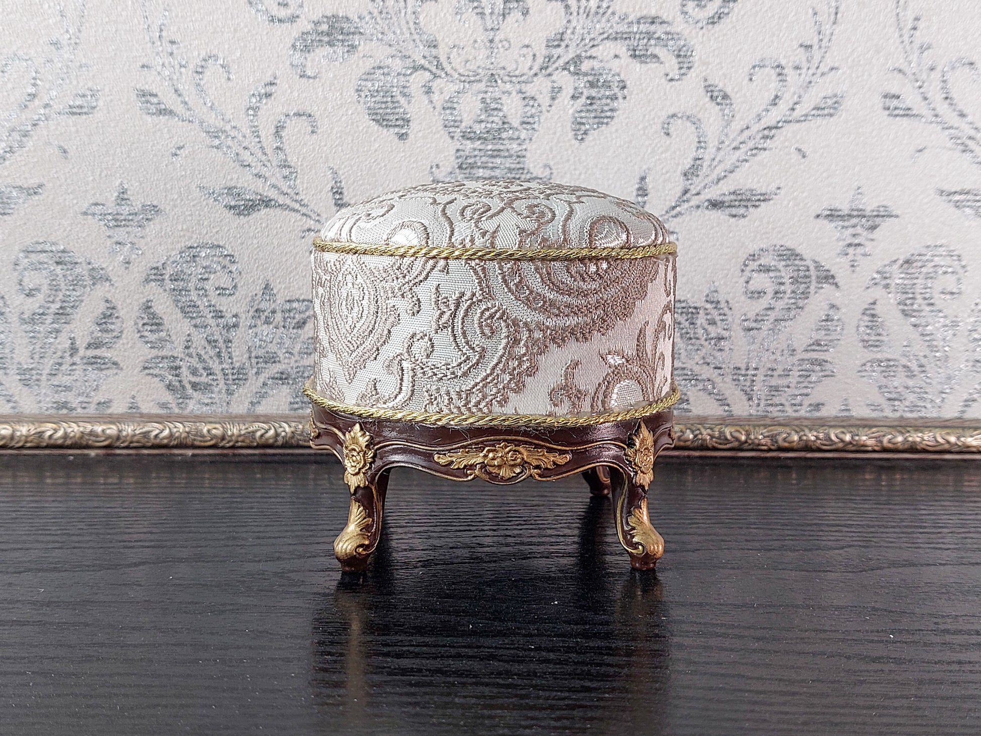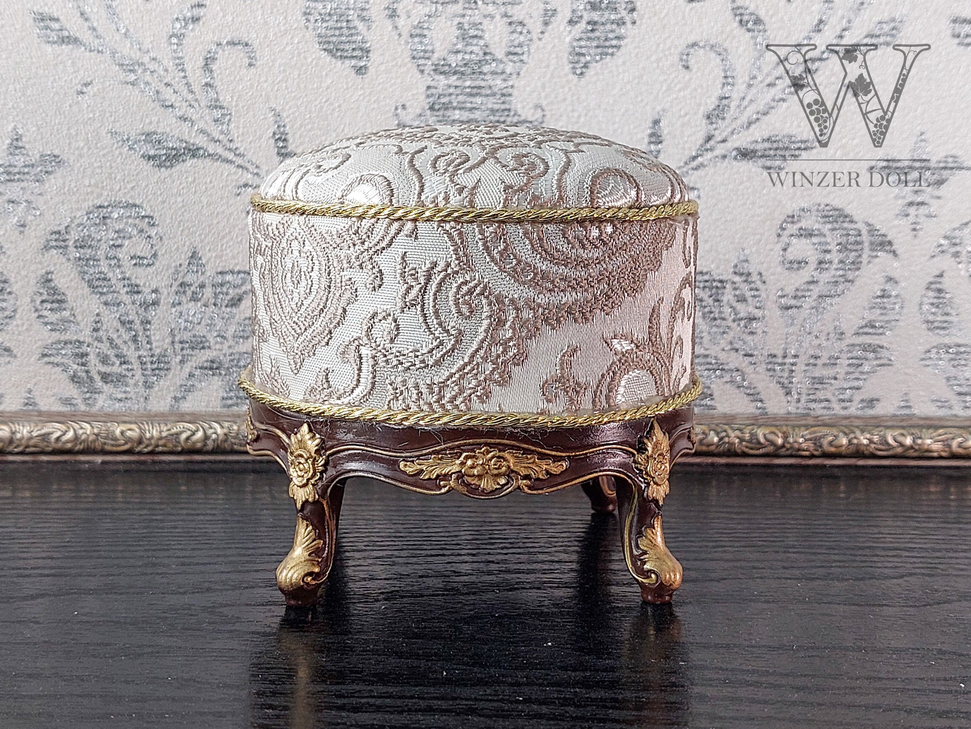 Baroque round ottoman for dolls 1/4 scale (35-44 cm / 14-17 inch). Handmade.