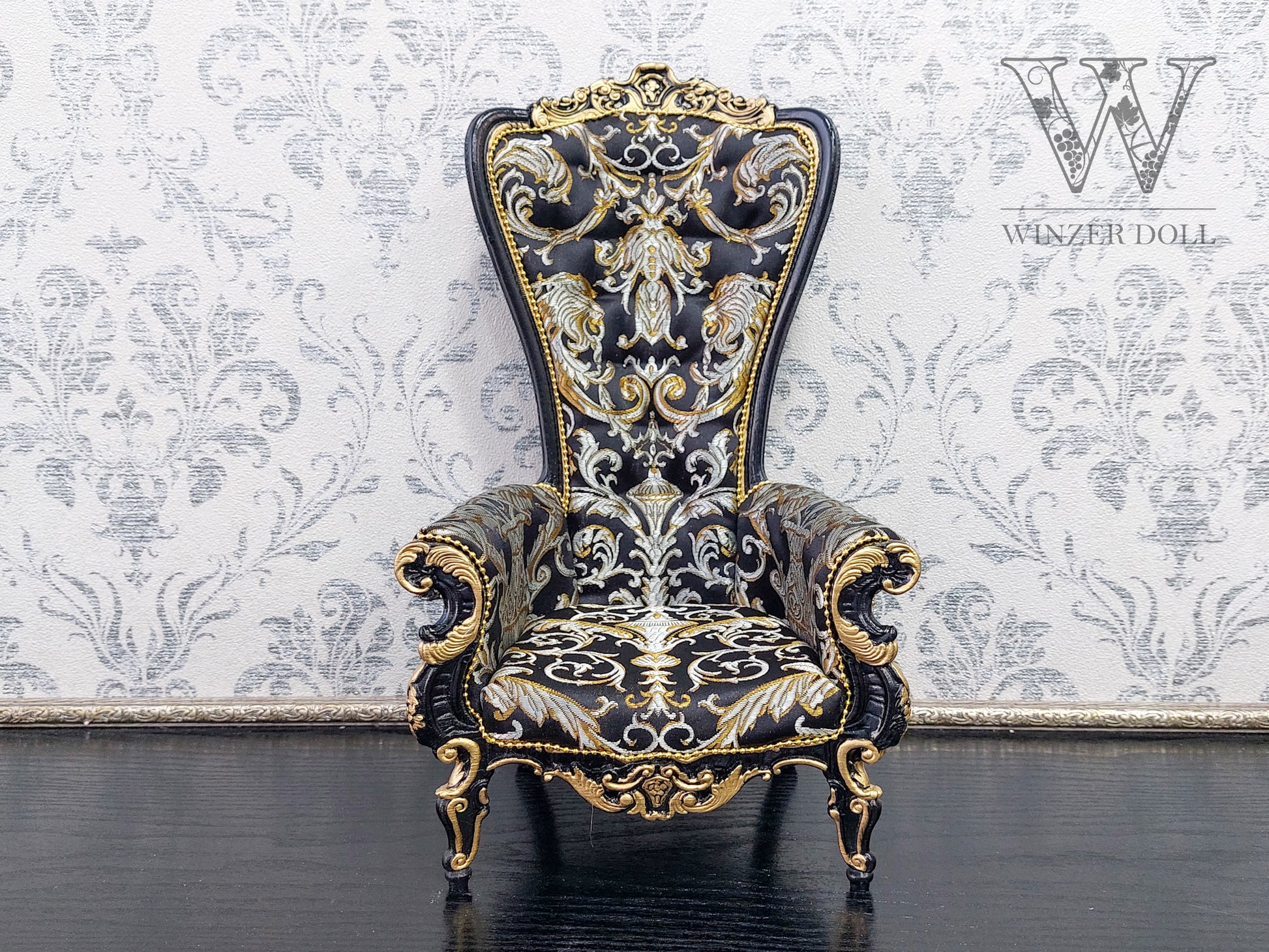 Baroque armchair, a fabulous throne for dolls 1/4 scale (35-44 cm / 14-17 inch). Handmade.