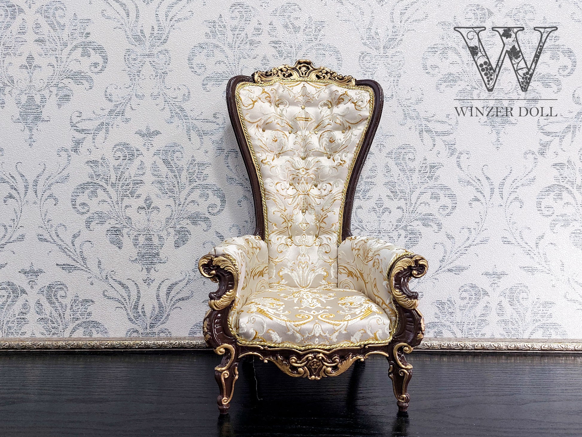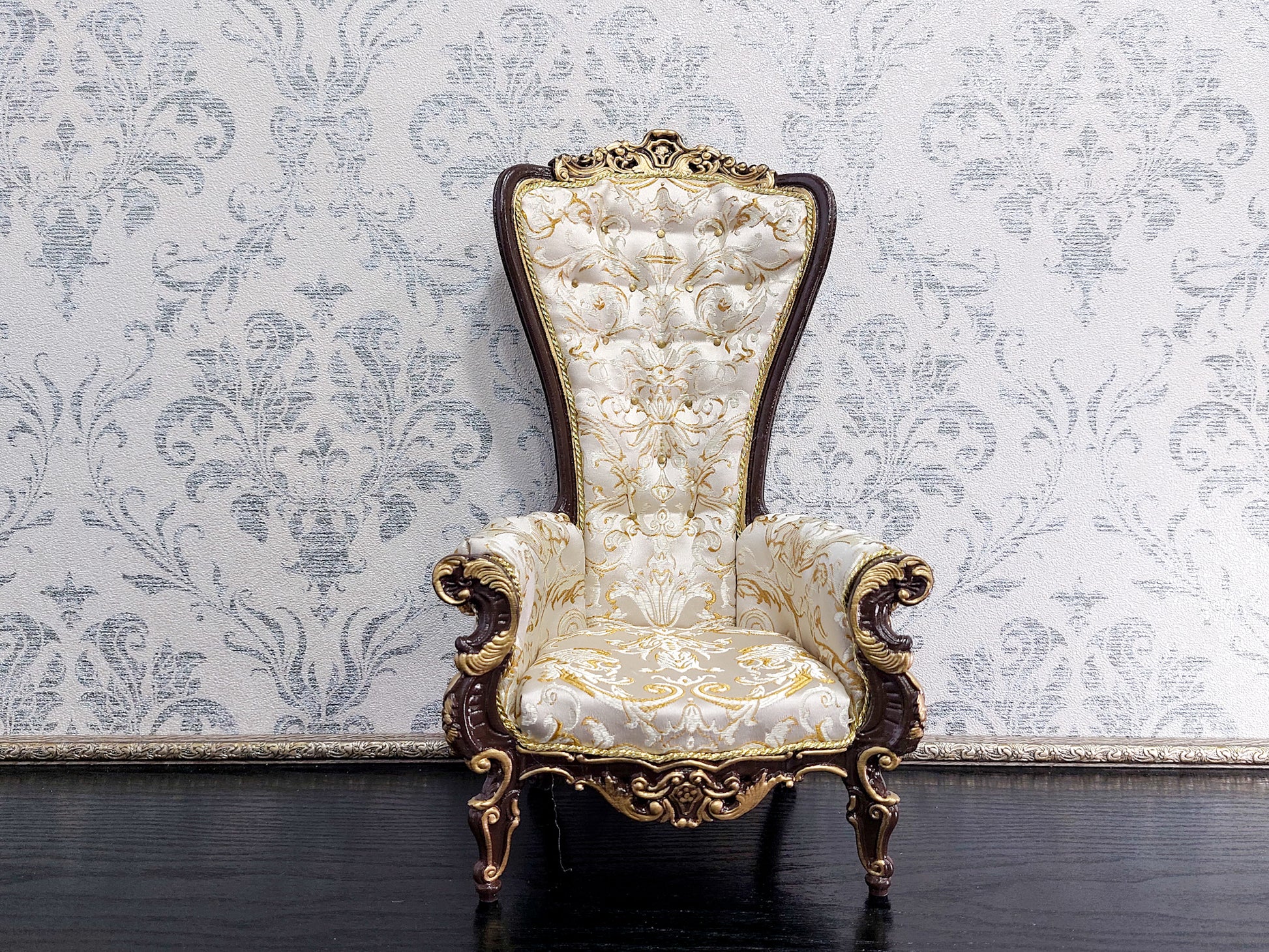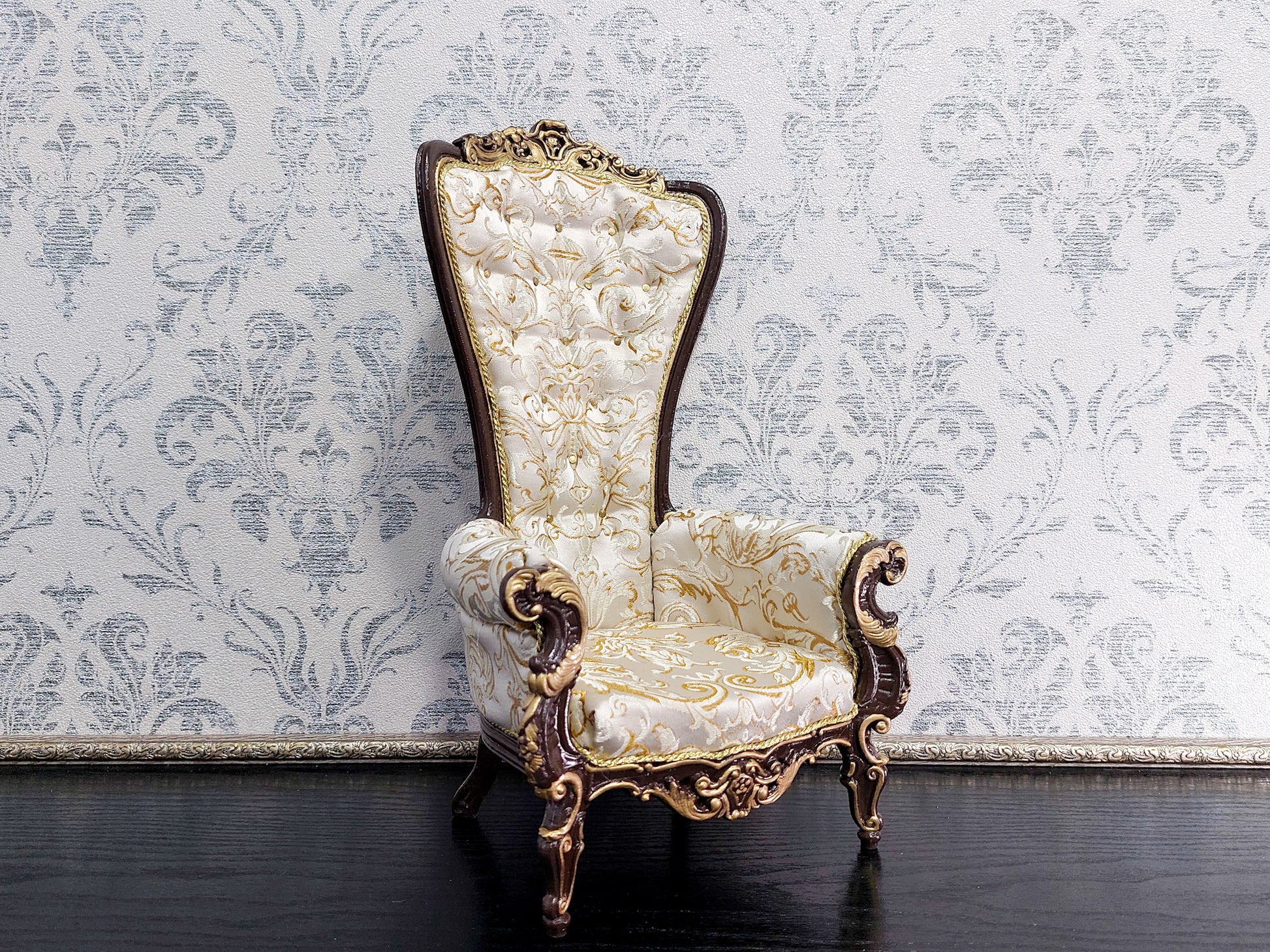 Baroque throne for dolls, brown & beige