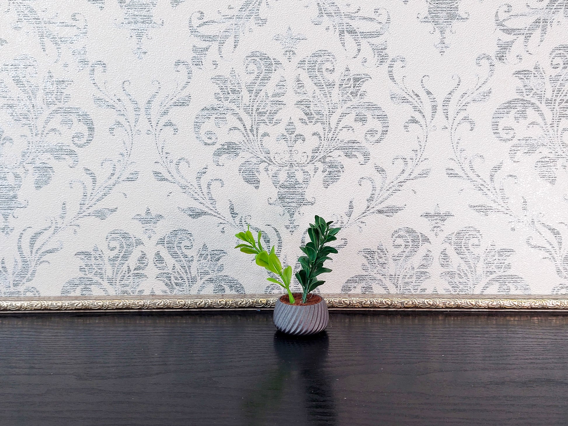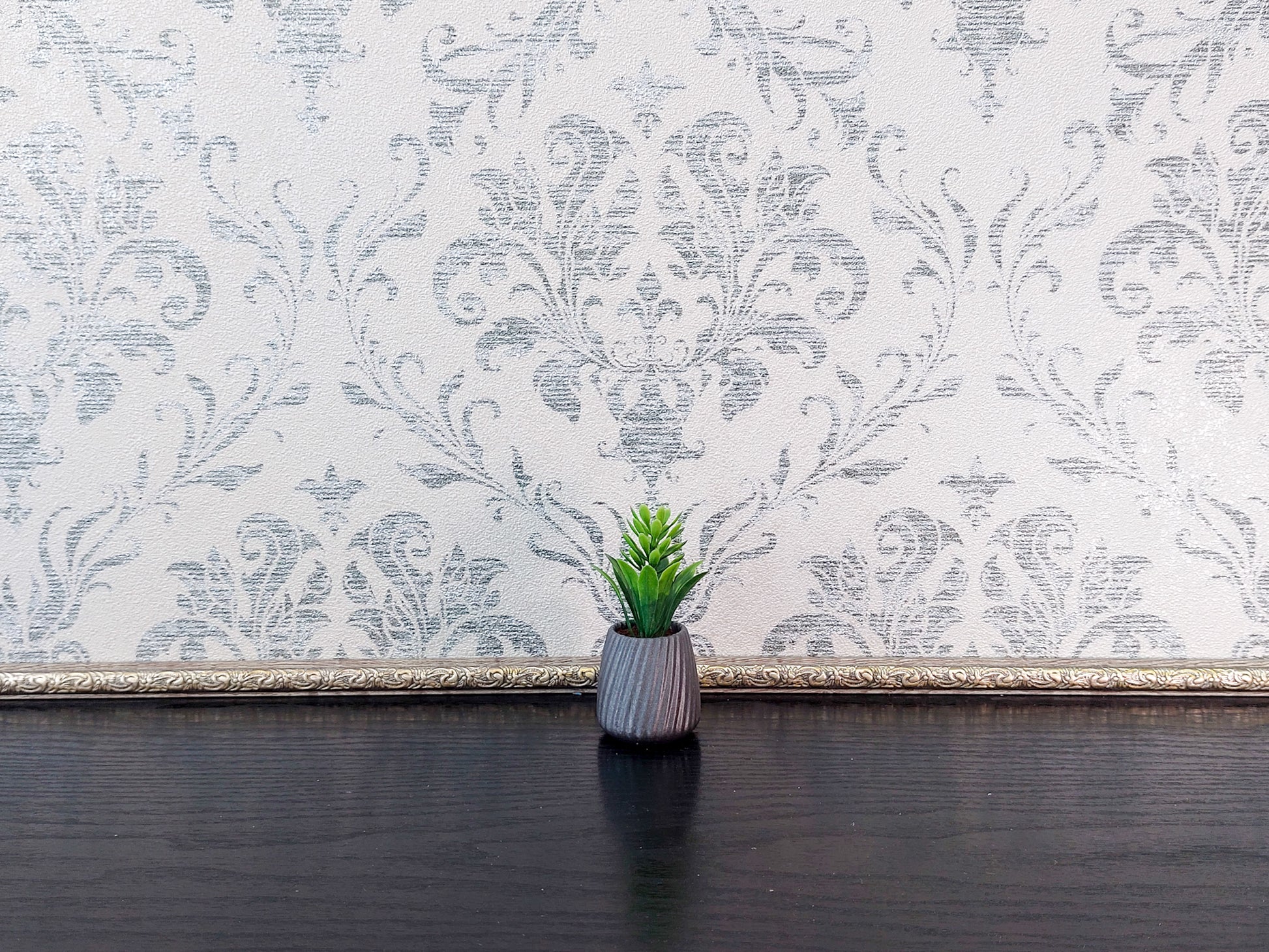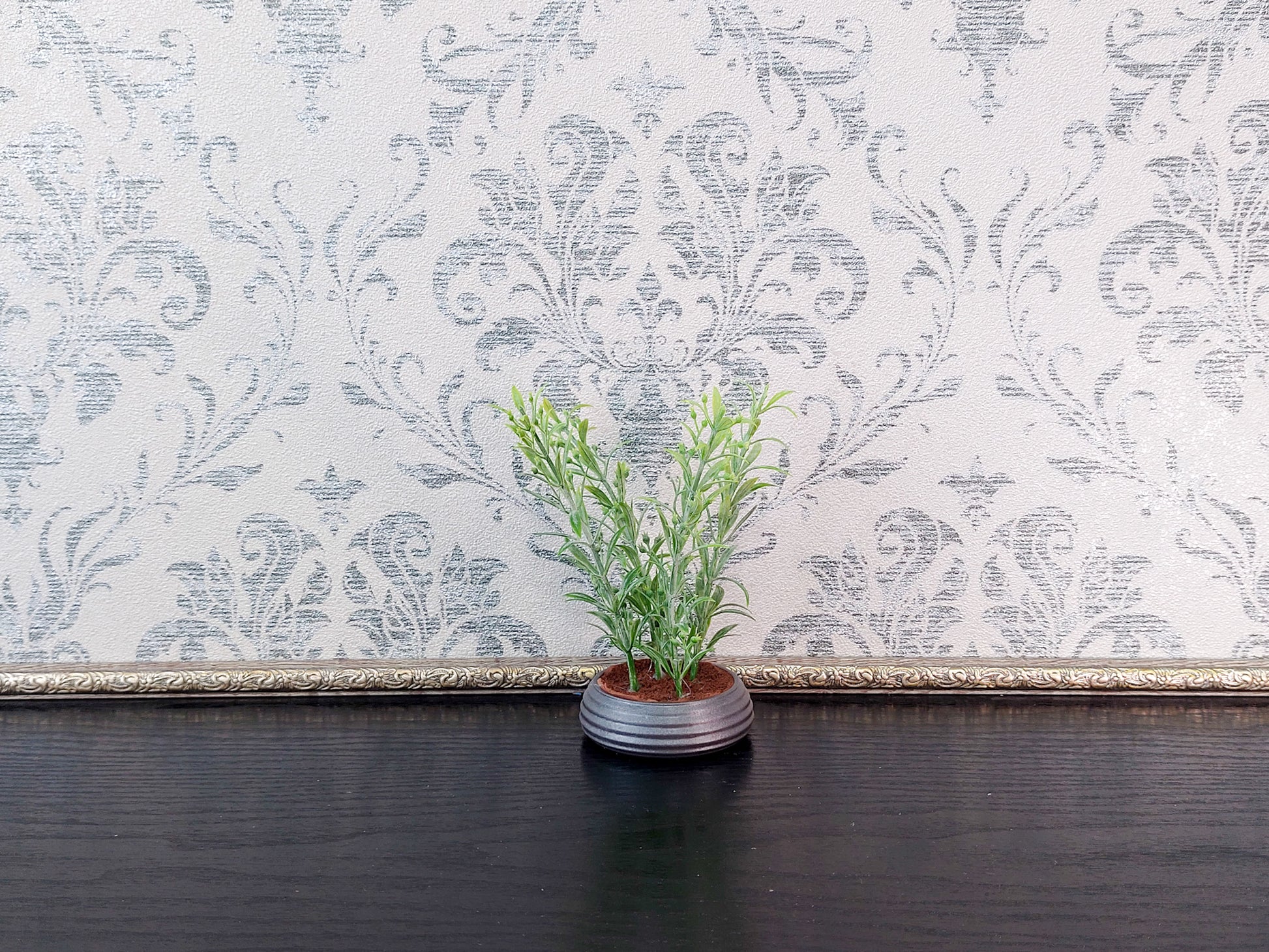 Miniature artificial plants in pots, set of 5 pcs, gray