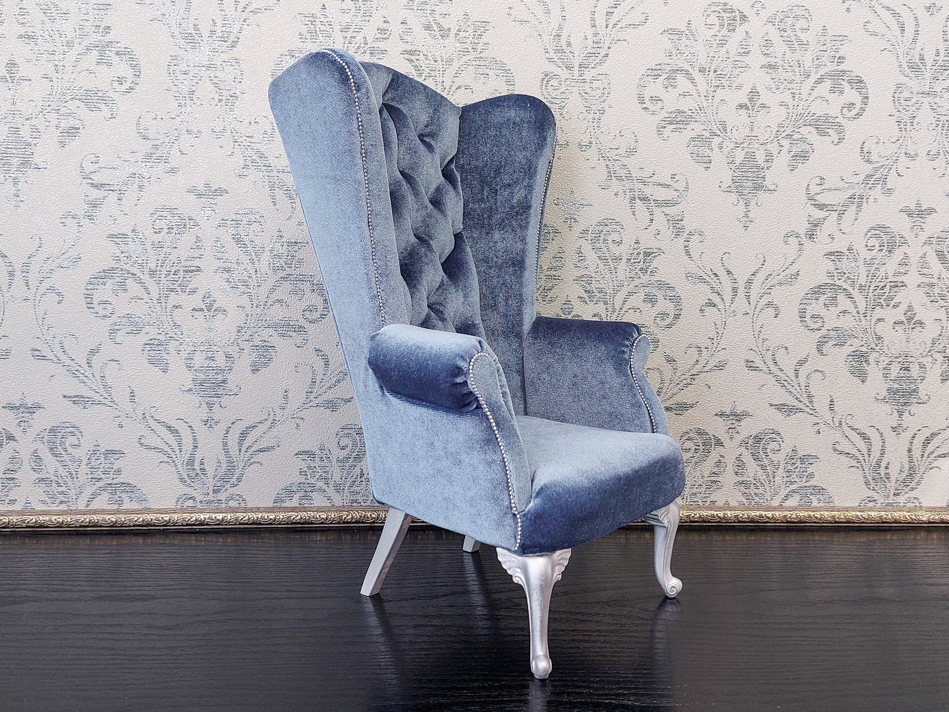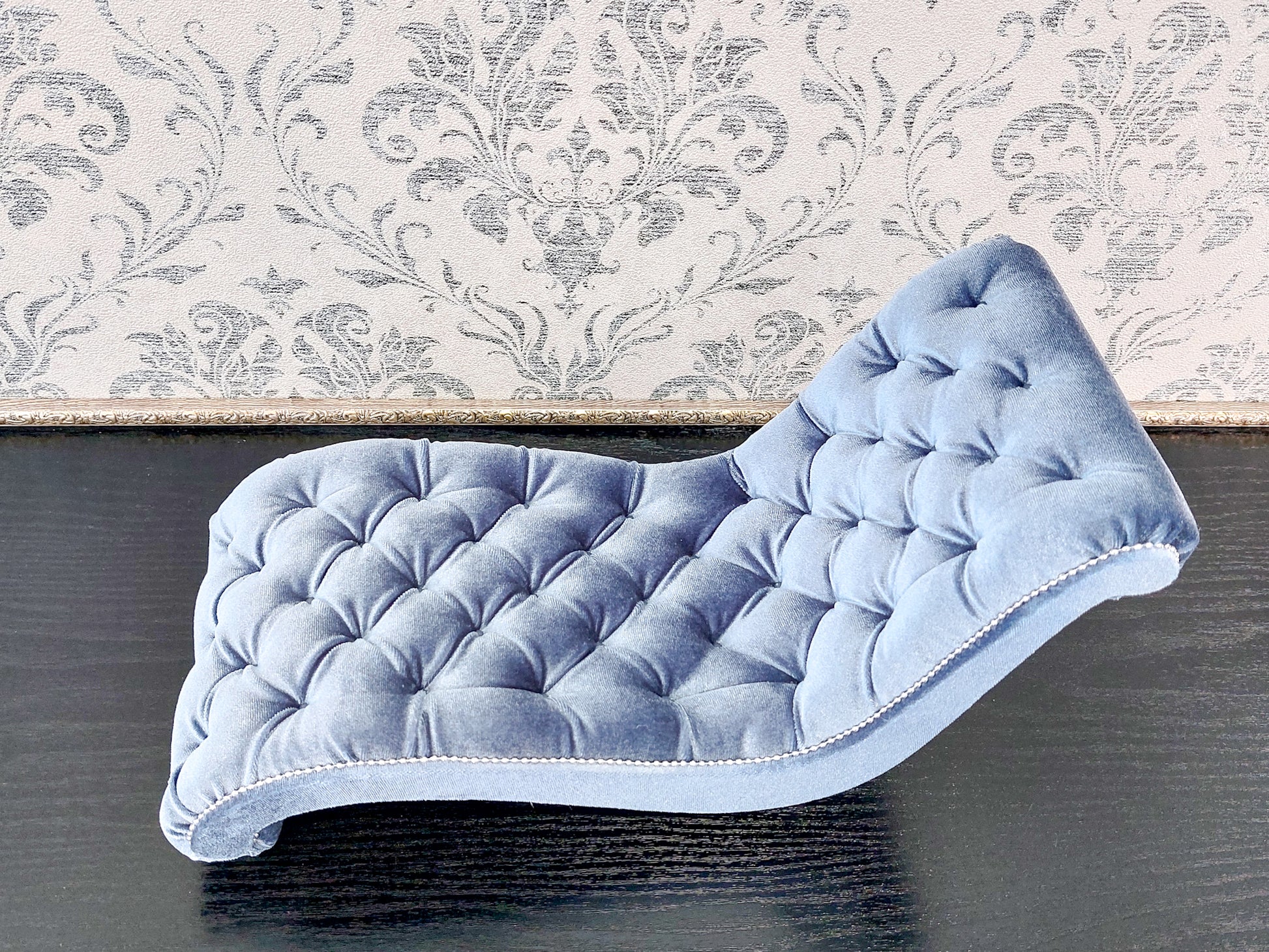 Reserved - Chaise lounge wave, Chesterfield queen, blue gray velvet