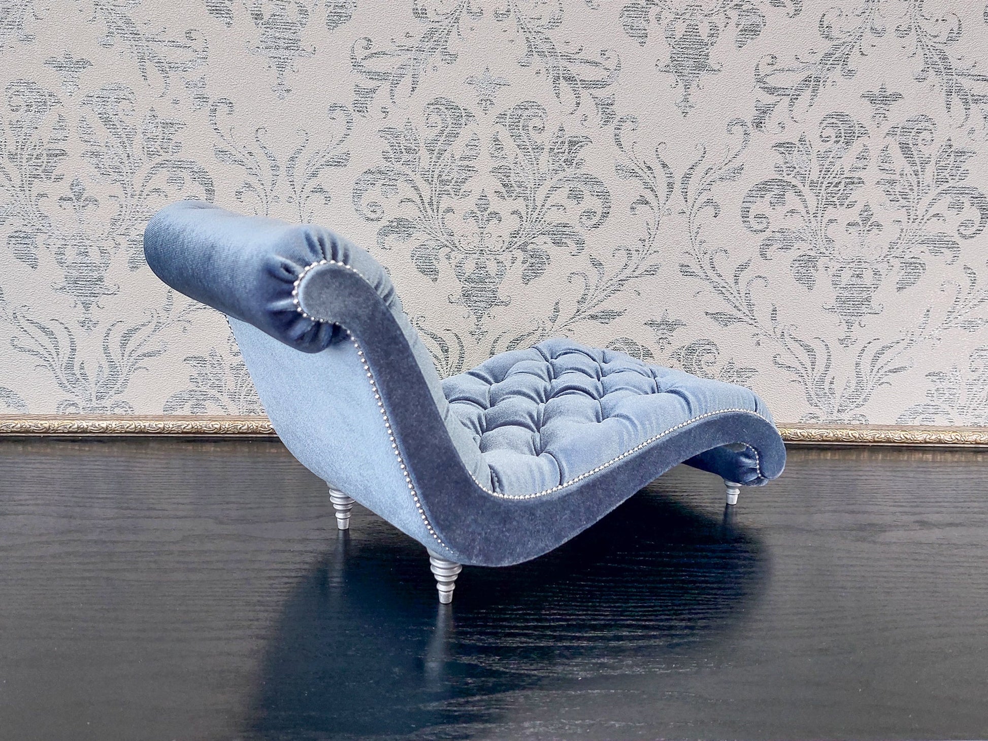 Reserved - Chaise lounge wave, Chesterfield queen, blue gray velvet