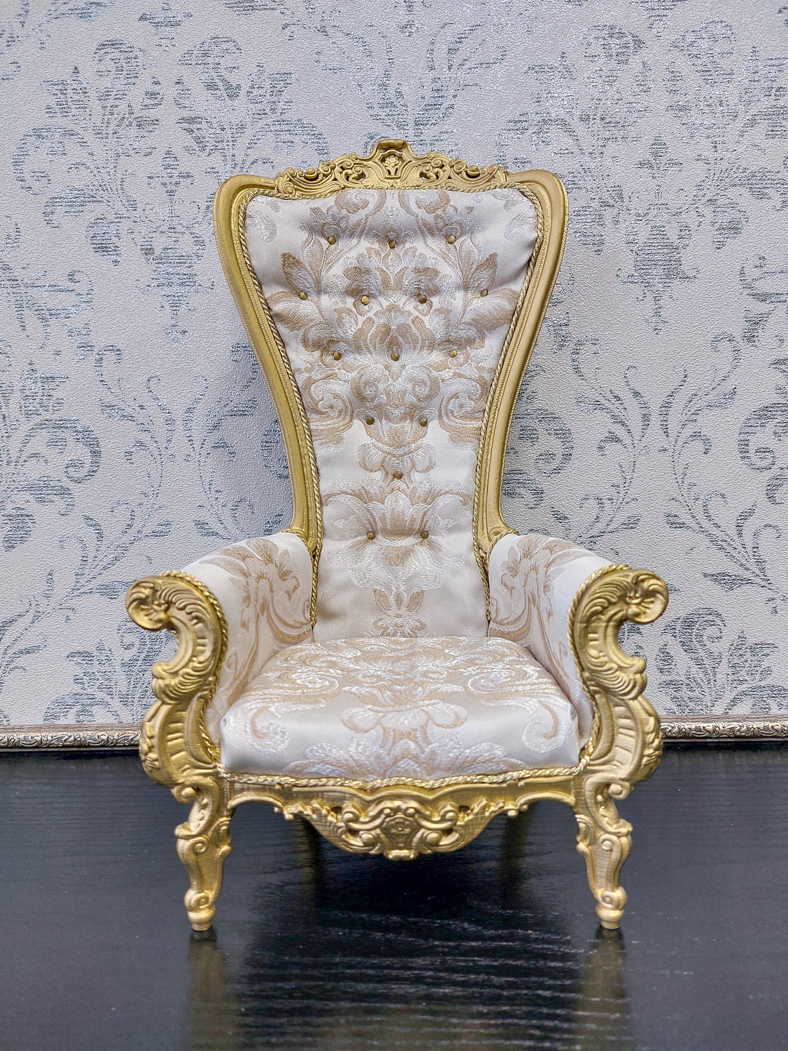 Reserved - Throne, sofa Wave, round table, doll posing stand, gold & beige