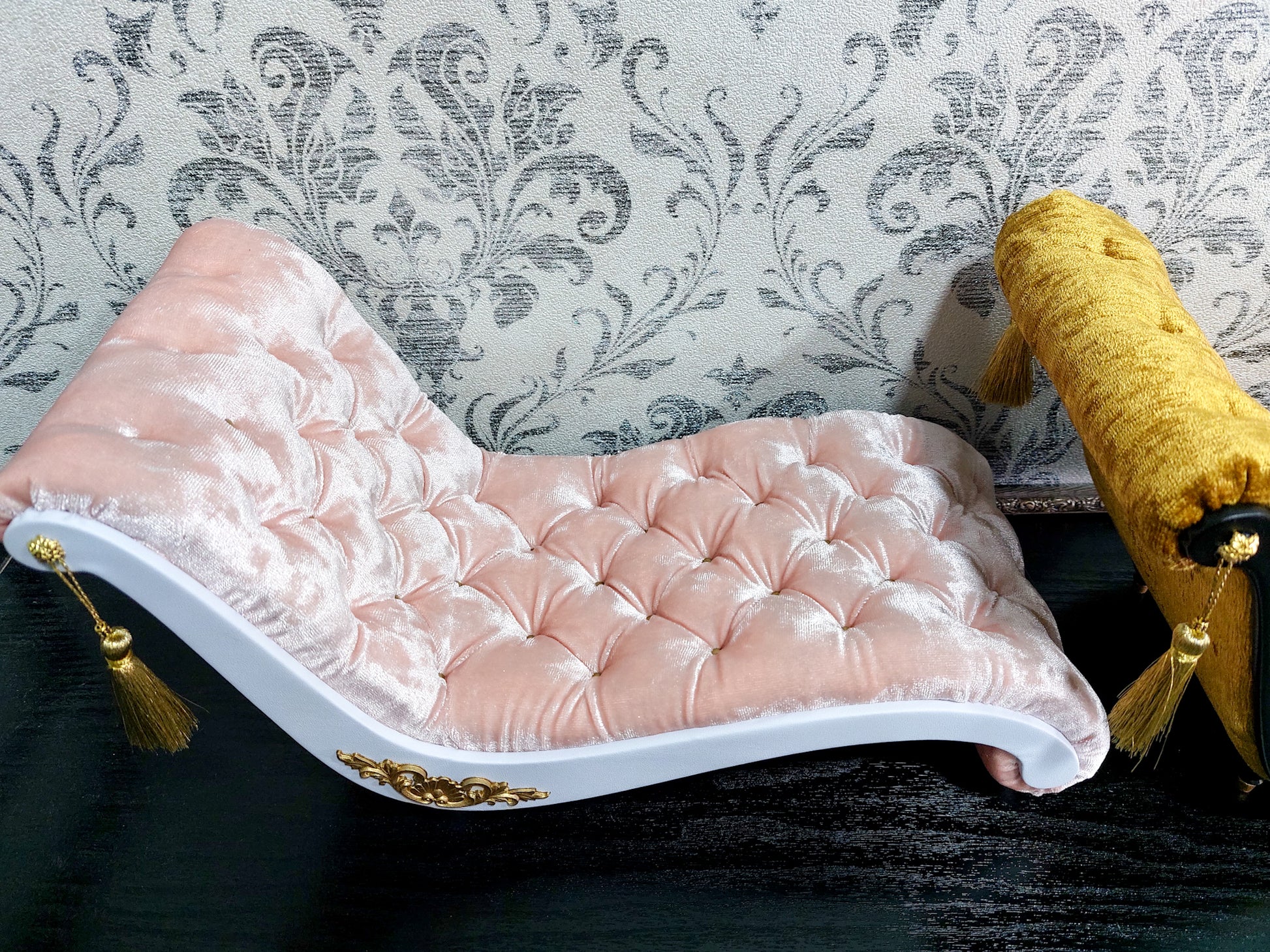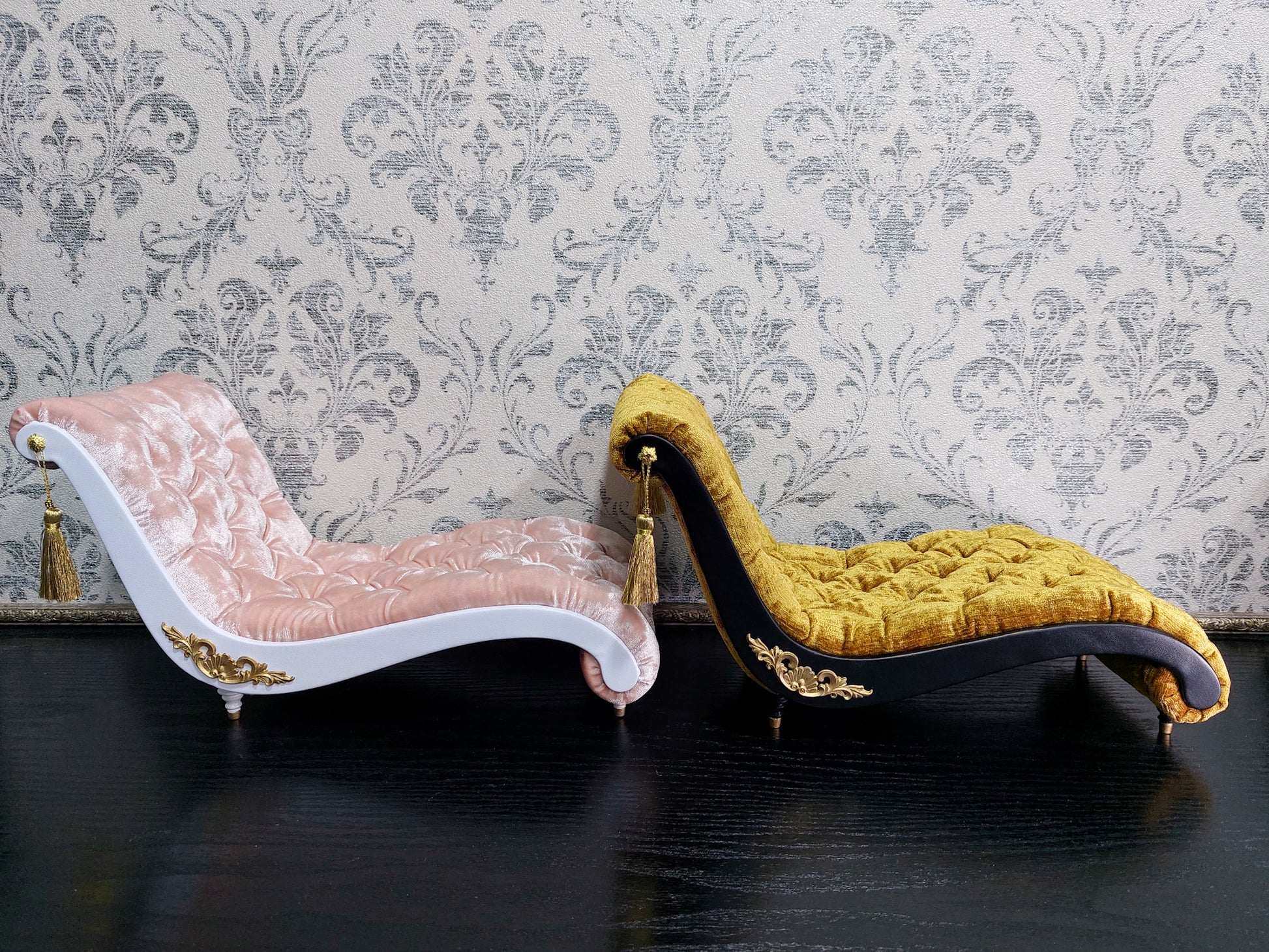 Reserved - Two chaise lounges, Antoinette chair, doll stand