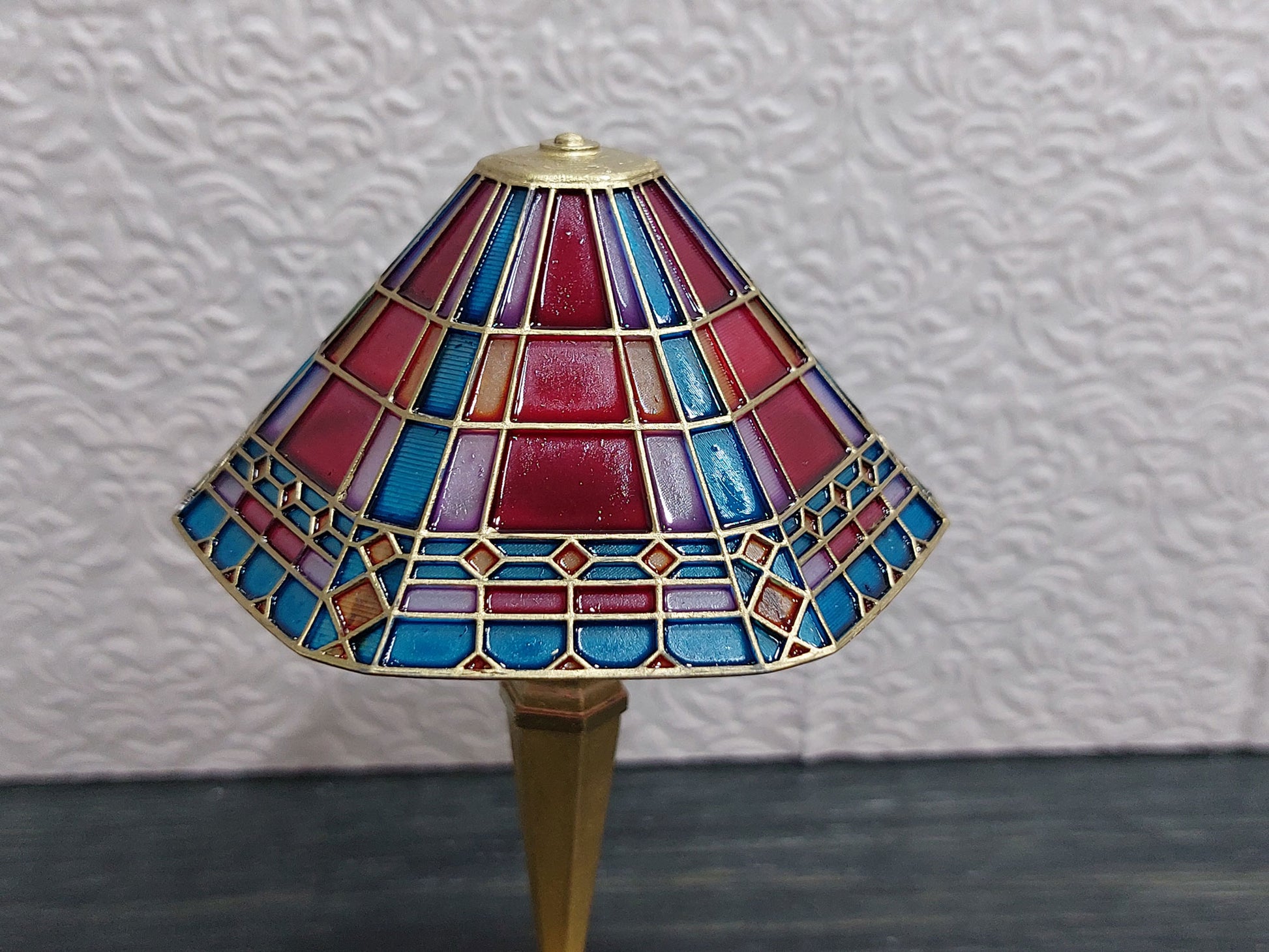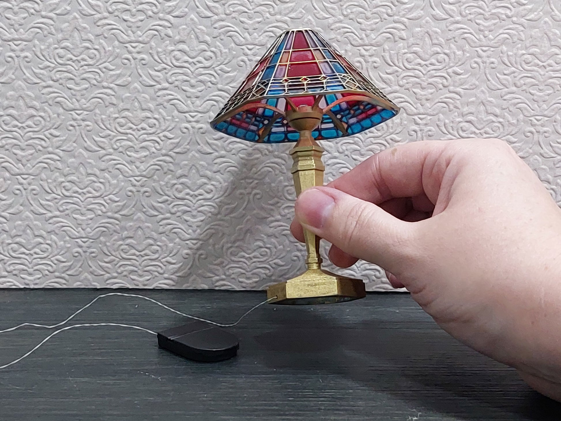 1/4 miniature Tiffany Style Stained Glass Table Lamp, with a battery compartment on the wire, for dolls 1/4 scale (35-44 cm / 14-17 inch). Handmade.